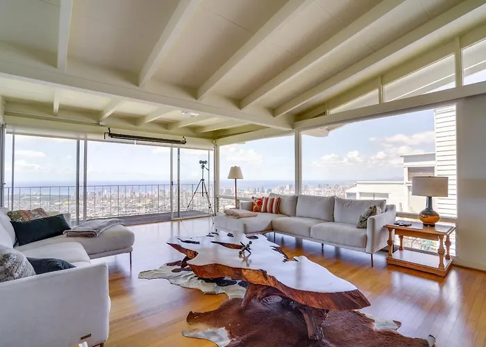 Alloggiando presso la Villa Ocean And Skyline Views Honolulu Retreat, gli ospiti possono raggiungere facilmente l'Acquario Waikiki, che si trova a 4 km. Situata nel quartiere Eastern Honolulu di Honolulu, la casa vacanze vanta una terrazza con vista sul mare.